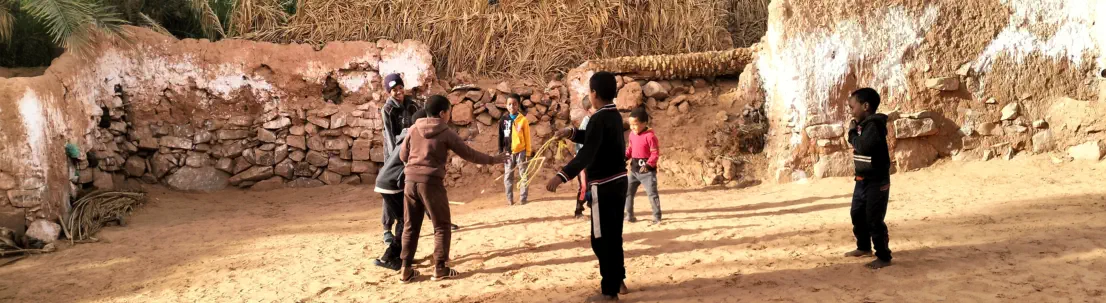 socio éducatives, sportives, artistiques et artisanales au bénéfice des jeunes enfants et adolescents.Elle prend en charge les couches sociales les plus démunies, s’occupe des enfants de Timimoun et des Ksour alentours, gère une crèche pour les tout petits ( de 2 à 5 ans et demi), offre aux jeunes en difficulté scolaire et/ou familiale, des cours de soutien, une formation à l’informatique et un accès à la bibliothèque (incitation à la lecture et possibilité de faire des recherches).