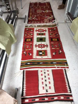 Reproduction des motifs enciens rcueillés ans les musées d'Alger et chez les perticuliers.La renaissence des teintures naturelles obtenues a partie des plentes les plus souvent cultivées jadis dans la region.La mise en ¼uvre intitulé FEMME DE TIMIMOUN ET KSOUR DU GOURARA fondé sur un cahier des charges exigeant dans des formations intensives et une évaluation permanente. Tous les tapis réalisés doivent tre conformes au patrimoine ancien.La confection de tout nos tapis sont réaliser uniquement avec en pure laine et coton la teinture est essentiellement naturelle.L'atelier est appelé a faire peu à peu évoluer le tapis GOURARI vers des création contemporaine sans jamais trahir l'authenticité du patrimoine.Les tisseuses de notre atelier bénéficient d'une formation continue et intencive à raison de deux stage par an.l'atelier peut réaliser des tapis d'une largeur de 2.10 cm la longueur quand à telle ne pause pas de problèmes.e délai de livraison est de 3 à six mois.je vous pris de bien vouloir vous aboner a notre page facebook pour bien suivre nos exposition dans tout le territoire nationale et international.